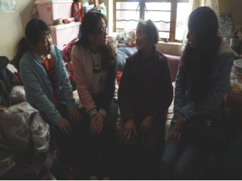 上圖為團(tuán)員們到孤寡老人家開(kāi)展活動(dòng)
